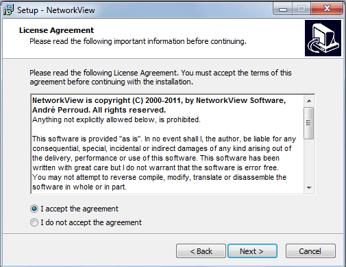 dimana NetworkView akan diinstal, secara default akan diinstal di C:\Program